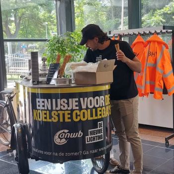 De ijsfiets is een ijskar geschikt voor marketingacties waarbij een volledige wrap met logo gewenst is. Jouw ijsfiets helemaal in kleur en stijl van je organisatie. Samen met smaken in bijpassende kleuren maakt het helemaal een stunt!